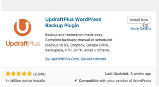 Install 'UpdraftPlus WordPress Backup Plugin'