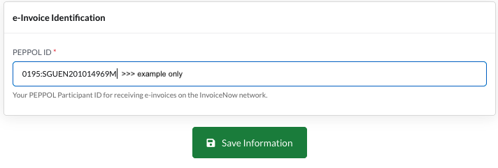 | Company / Business | Peppol ID | Required for businesses registered on the InvoiceNow (Peppol) network |