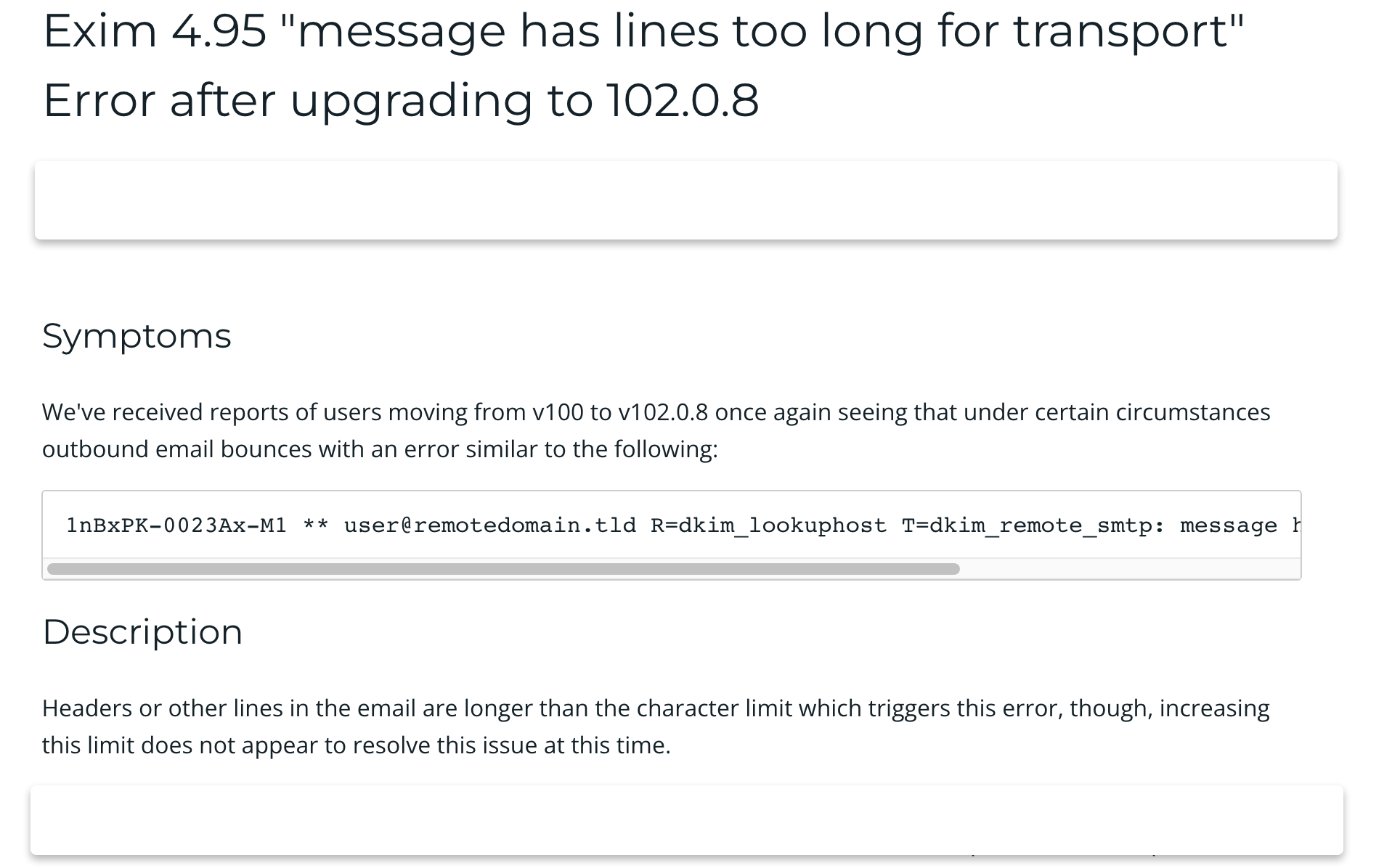 [COMPLETED] Announcement - cPanel "message has lines too long for transport" Error